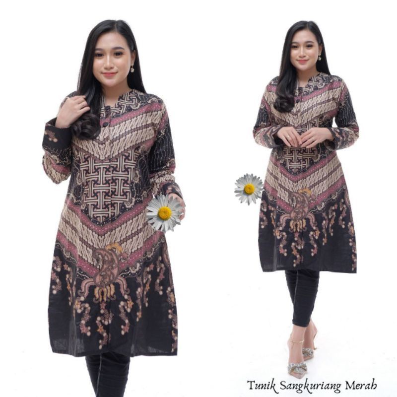 Tunik Batik Sangkuriang Merah Lengan Panjang- Naira Batik