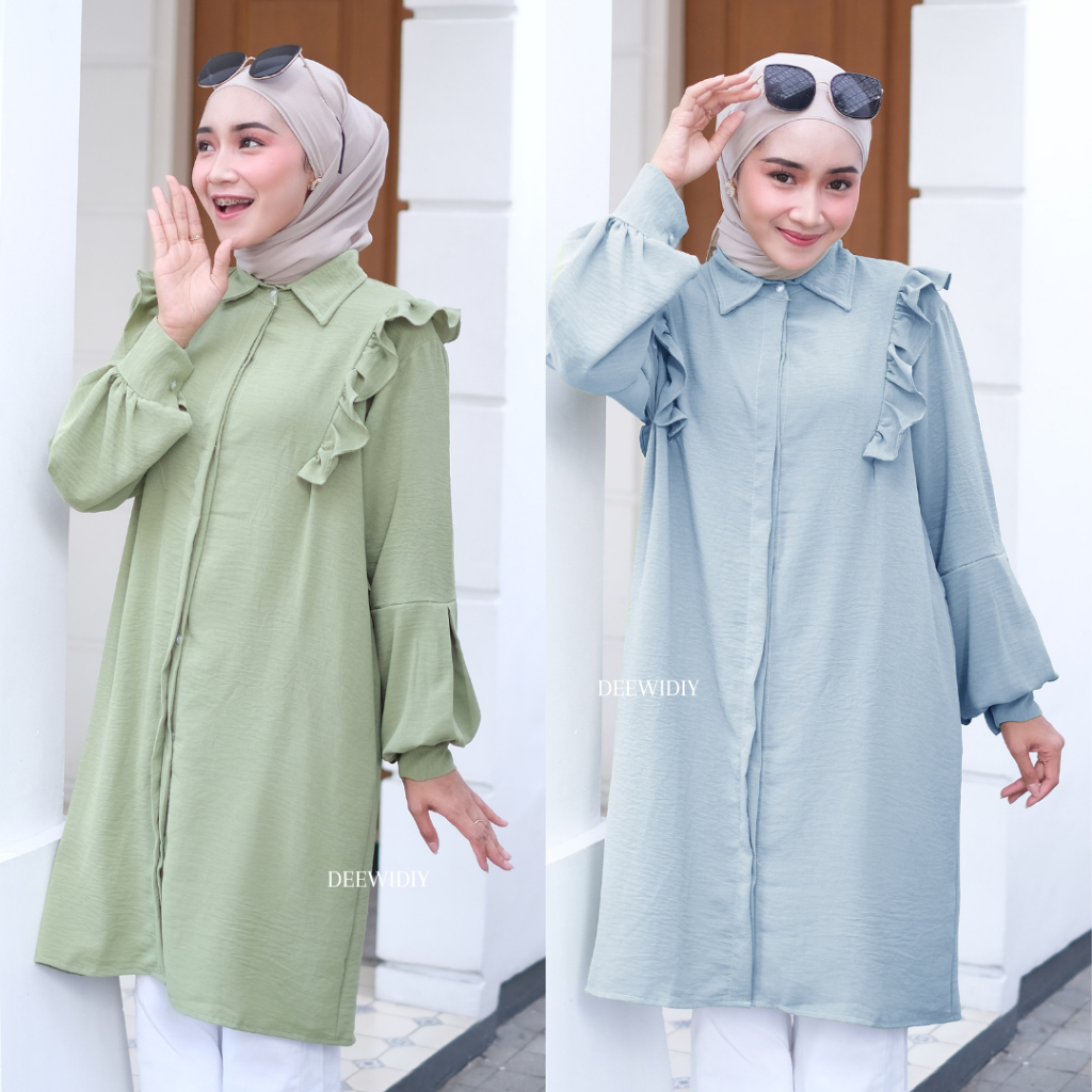 Tunik terbaru dengan aksen ruffle cantik di bagian pundak! ❤