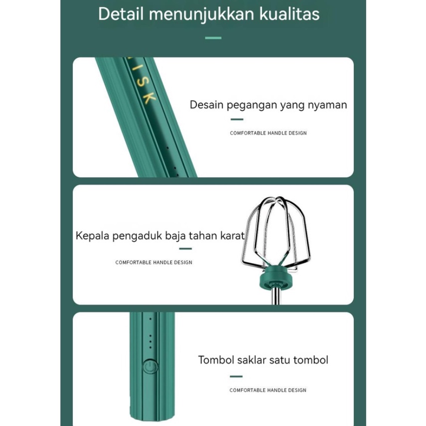 TUR Pembuih Susu Pengocok Telur Handheld Blender Milk Frother Electric Mixer Portable Egg Beater USB Rechargeable