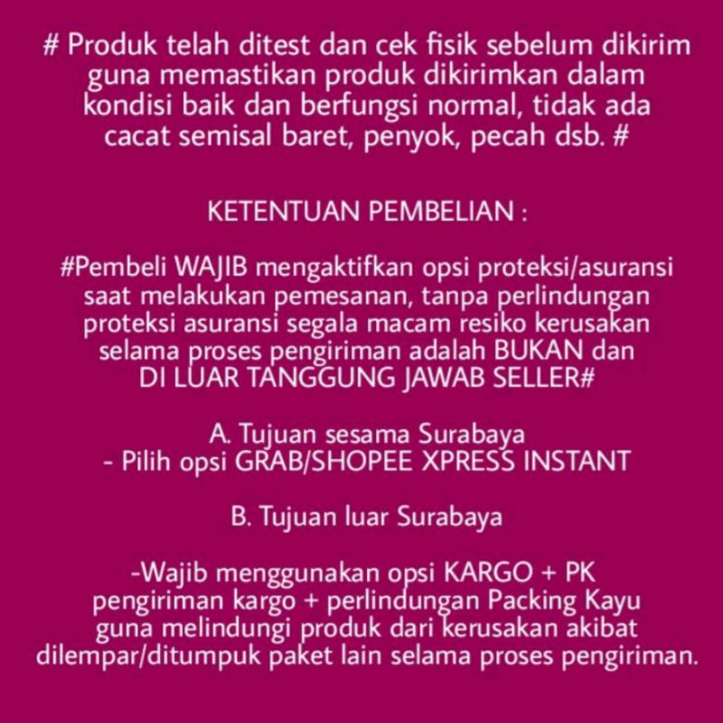# Produk telah ditest dan cek fisik sebelum dikirim guna memastikan produk dikirimkan dalam kondisi baik dan berfungsi normal, tidak ada cacat semisal baret, penyok, pecah dsb. #