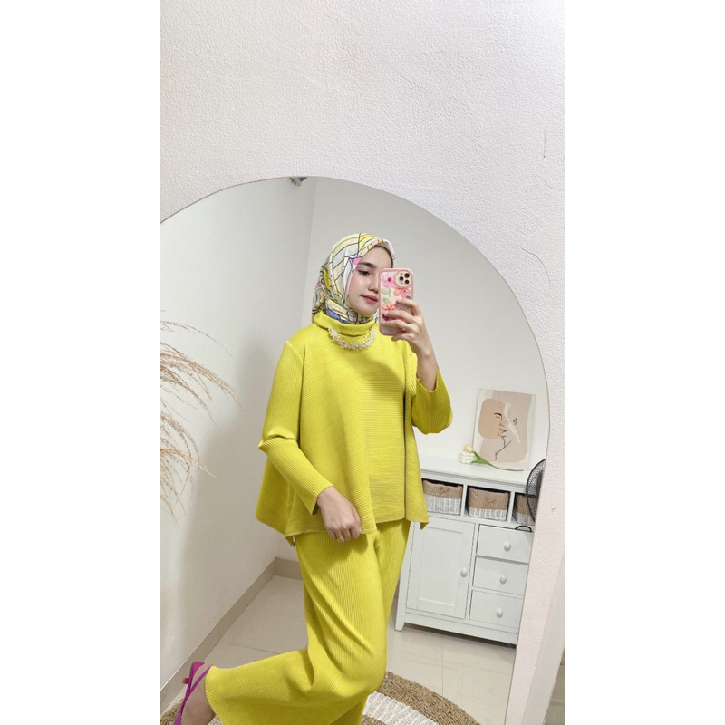 Turtleneck pleats set / Turtleneck blouse + kulot plisket premium Bahan premium pleats (stretch)