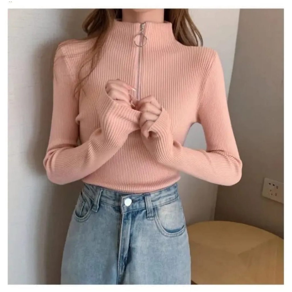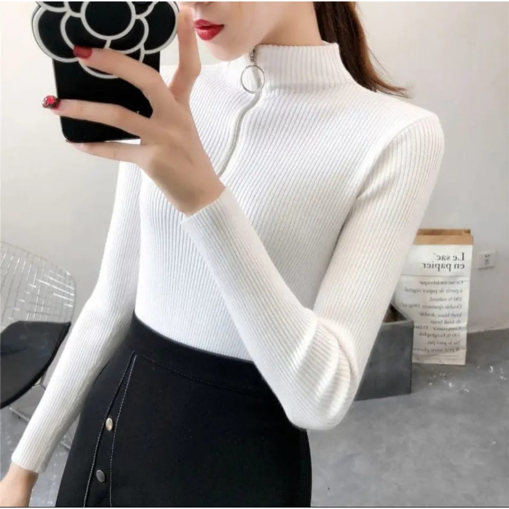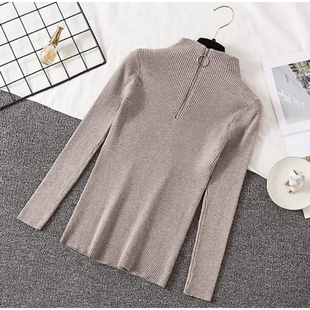 Detail Turtleneck Zipper Knitwear Wanita Korean Style Baju Atasan Inner Rajut Tangan Panjang dan Tebal