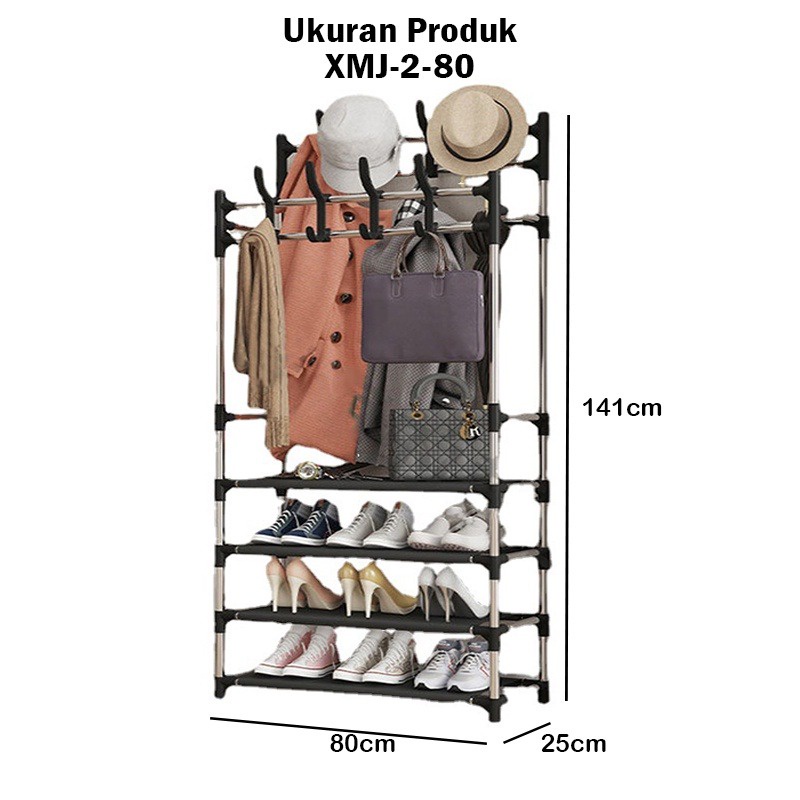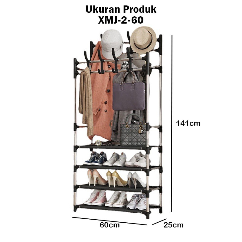 TURUN HARGA Rak gantung penyimpanan Sepatu Stand Hanger Baju Tas Topi Portable Multifungsi Serbaguna XMJ-1/2 Hitam 4 Tingkat