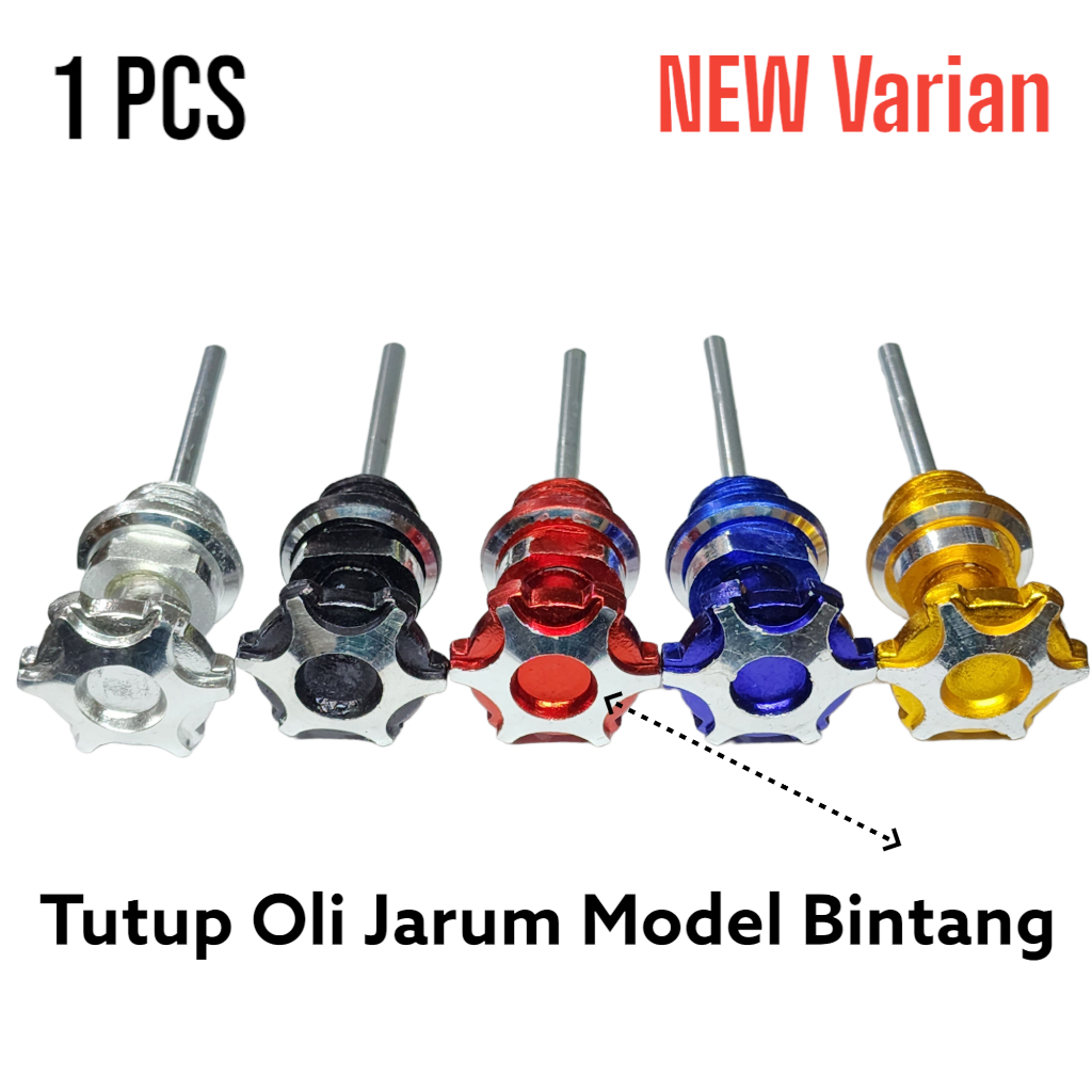 TUTUP OLI JARUM TWOTONE UNIVERSAL BISA BUAT SEMUA MOTOR TERSEDIA BANYAK PILIHAN VARIAN : * MODEL (BINTANG) LOKAL - MERAH - BIRU - GOLD - SILVER - HITAM - GOLD BLUE - BLUE GOLD
