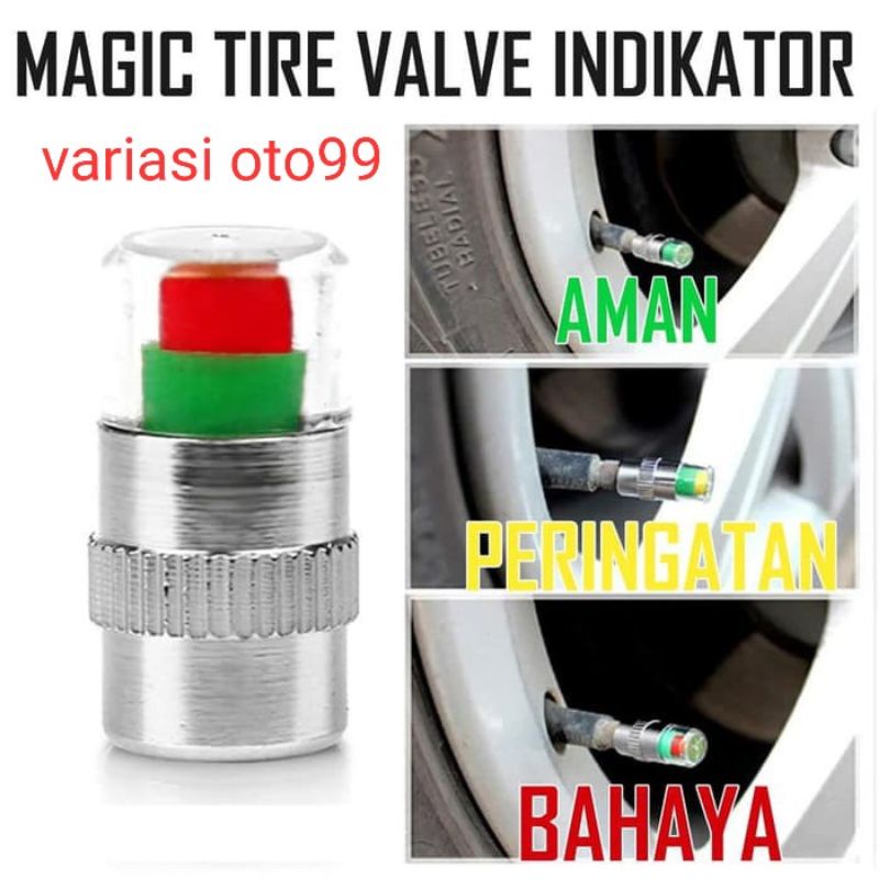 DESKRIPSI : Tutup Pentil Ban dengan Indikator Tekanan Angin 36 PSI (2.4 Bar) Sangat cocok pasang di ban motor maupun mobil yang diisi dengan tekanan angin minimal 36 PSI. Tekanan angin ban yang terkontrol dapat meningkatkan keamanan, umur pemakaian ban, dan penghematan BBM. Cukup melihat indikator warna untuk mengetahui tekanan angin ban, tidak perlu repot-repot diukur.