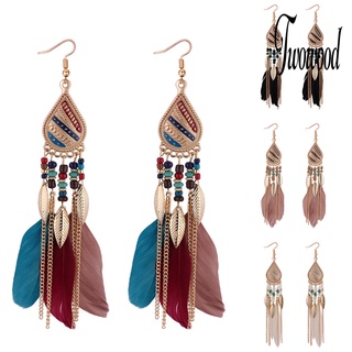 Anting Hook Panjang Menjuntai Aksen Bulu Gaya Vintage Untuk Wanita