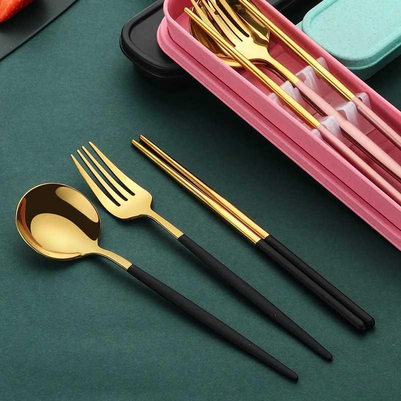 Set perlengkapan alat makan seperti sendok, garpu, dan sumpit yang cocok untuk Anda bawa pada saat berpergian seperti pada waktu piknik, camping, ataupun berpergian kemanapun. Terbuat dari material stainless steel sehingga aman untuk digunakan.