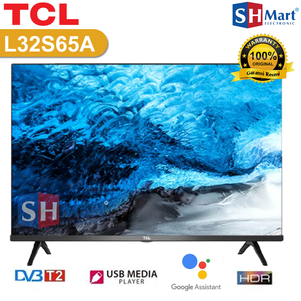 Spesifikasi 32S65A : ANDROID TV SUDAH DIGITAL - Android Tv - Siaran digital - Screen Size : 32 Inch - Resolution : 1366 x 768 ( HD ) - Contrast Ratio : 1:3000 - Viewing Angle : 178° - Backlight System : LED Backlight - Response Time : 6.5 ms - Internal Memory : 8 GB - Broadcasting Type : Digital ( DVB-C/T/T2 ) - LED Features :- - Operating System : Android - Connect With Wi-Fi - With Built-in Receiver - Google Play Store - Communication With YouTube - Netflix Application - Google Cast ( Connect Mobile Phone with TV to Watch Programs and Play Games ) - Voice Search - USB : Video - Photos - Music - Inputs and Outputs :- - Rf In : 1 ( Digital ) - HDMI : 2 - USB : 1 - Video In : 1 - Component ( DVD ) : 1 - LAN : 1 - Audio Output Power : 5 Watt x 2