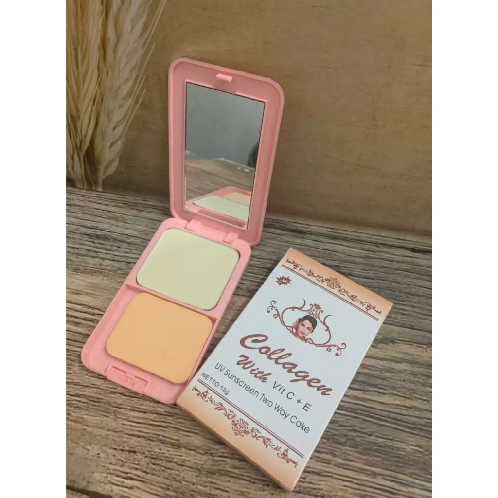 Two Way Cake Colagen Menyamarkan noda hitam / flek dan bekas jerawat Membuat kulit wajah tampak lebih segar, cerah, dan putih bersinar Menyamarkan kerutan diwajah