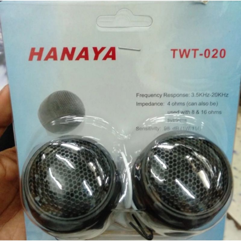 HARGA DI ATAS 1 PASANG = 2BH Tweeter Mobil Tipe: TWT-020 Merek: Hanaya ✓ Design Elegan ✓ Frequency response 3,5KHz - 20KHz ✓ used with 8 & 16ohms ✓ Sensitivity 98DB (1W/1M) ✓ 150W ✓ harga sepasang