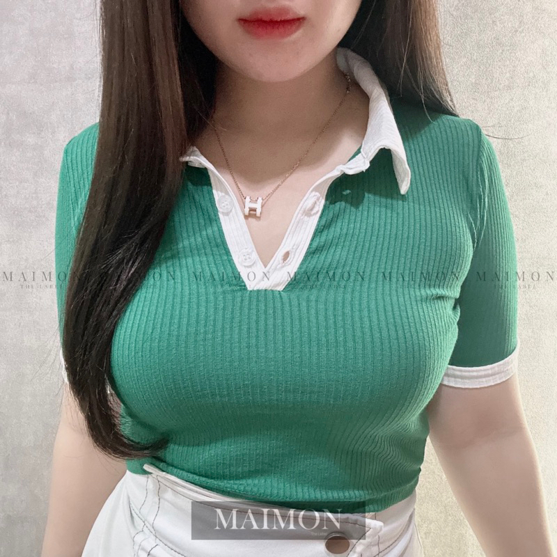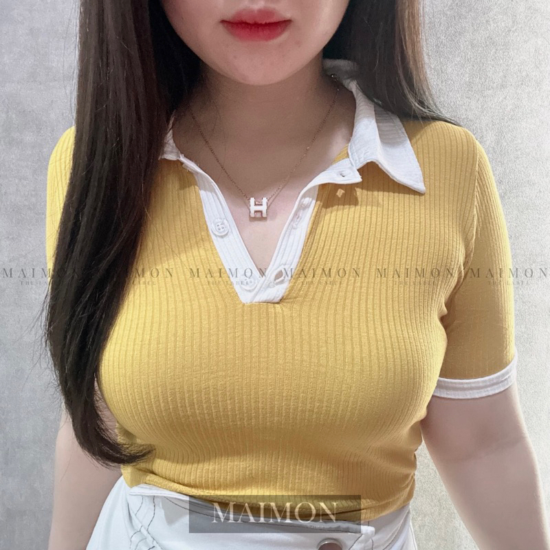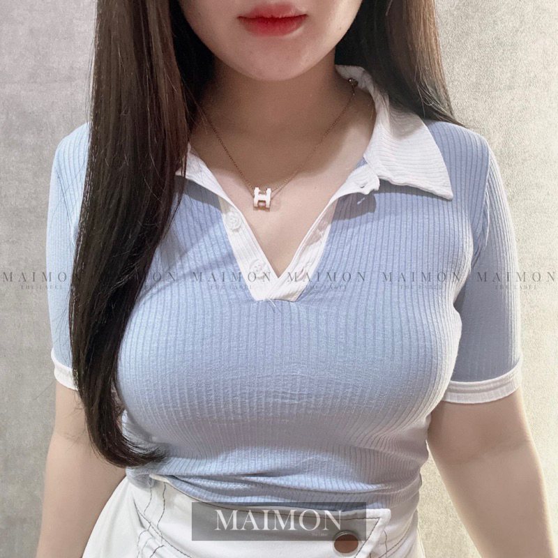Detail Two Tone Polo Shirt | Atasan Crop Korean Fashion | Maimon Grosir