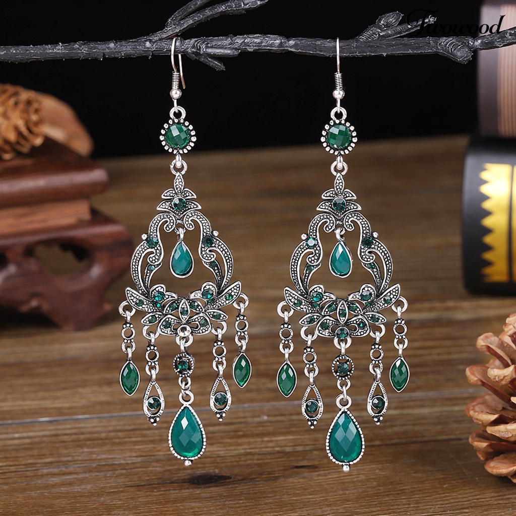 Detail Twowood 1 Pair Dangle Earrings Hollow Flower Tassels Faux Crystal Vintage Long Lasting Hook Earrings for Wedding