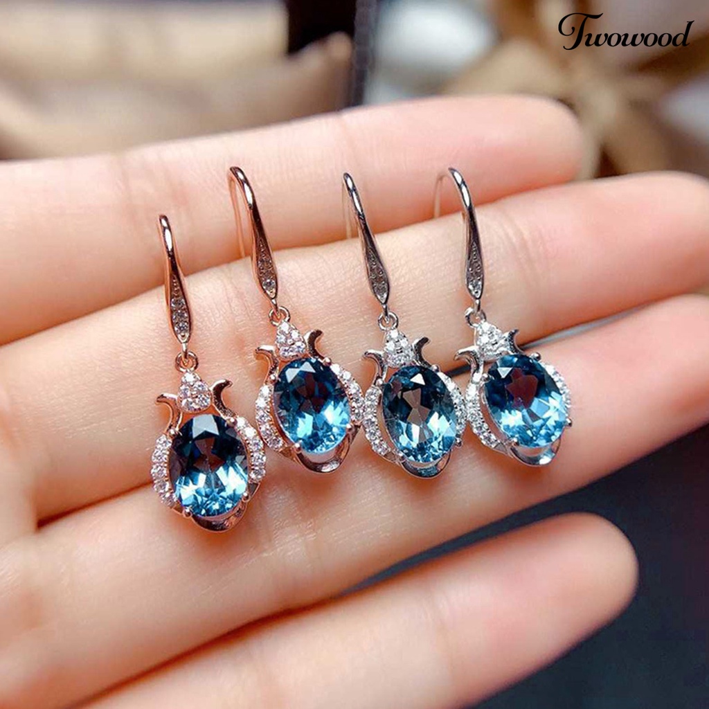Detail Twowood 1 Pair Hook Earrings Faux Topaz Rhinestones Ladies Bright Luster Long Lasting Drop Earrings for Wedding