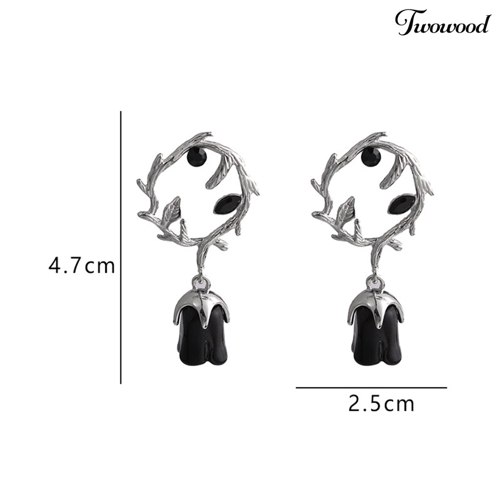 Detail Twowood 1pasang Anting Stud Gothic Keren Duri Rotan Geometris Electroplating Hias Hadiah Hari Kasih Sayang Wanita Bunga Mawar Liontin Anting Perhiasan Untuk Pacar