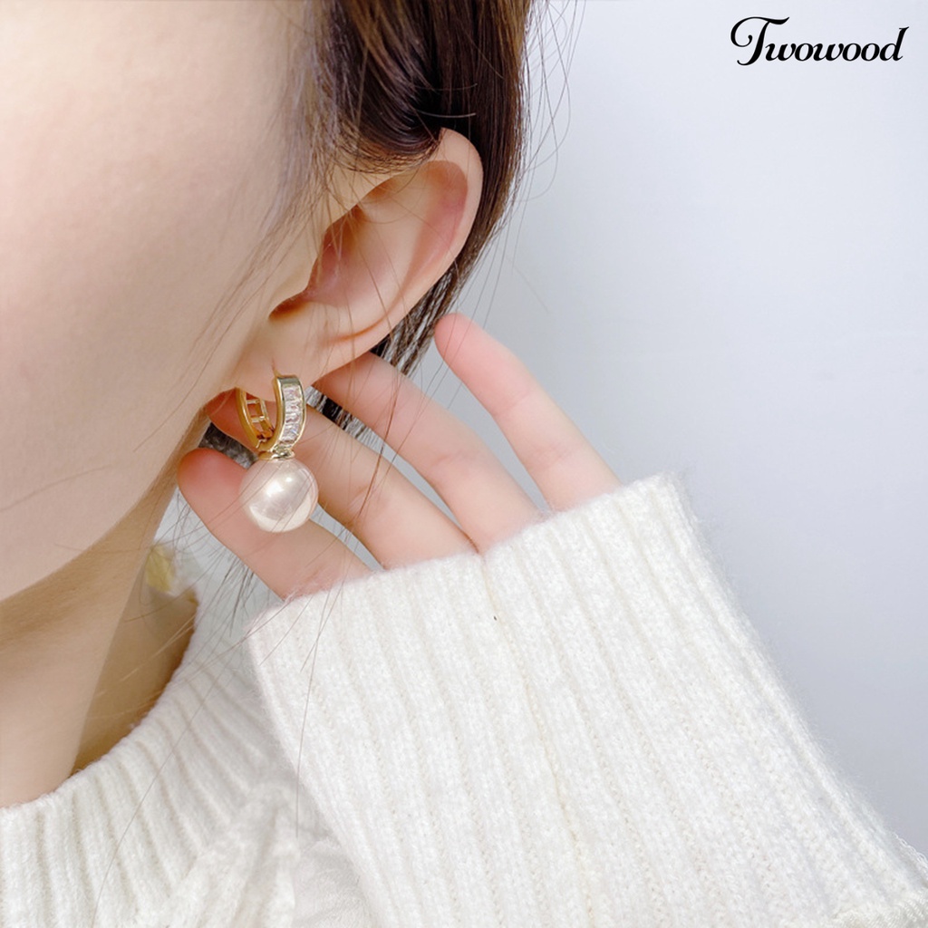 Detail Twowood 1pasang Drop Anting Gaya Perancis Retro Hollow U Shape Elegan High Gloss Mutiara Imitasi Wanita Earrings Fashion Perhiasan