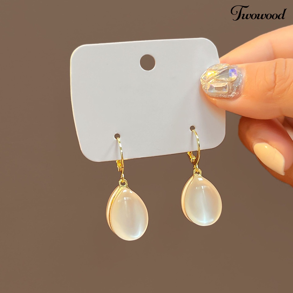 Twowood 1pasang Drop Earrings Geometris Gaya Klasik Pengerjaan Indah Gloss Tinggi Liontin Dekorasi Aksesori Faux Opal Water Drop Earrings Aksesoris Pakaian