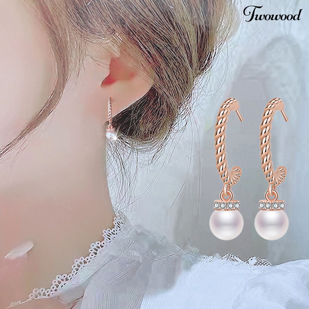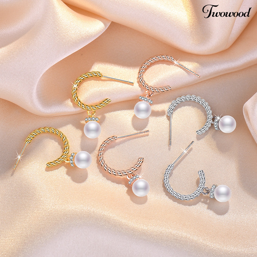 Detail Twowood 1pasang Wanita Anting Bersinar C-shaped Pendant Berlian Imitasi Hias Electroplating Telinga Dekorasi Aksesori Fashion Mutiara Imitasi Menjuntai Anting-Anting Untuk Kehidupan Sehari-Hari