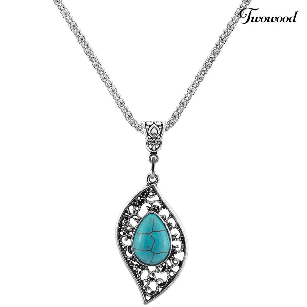Detail Twowood 3Pcs/Set Vintage Wanita Faux Turquoise Turtle Drop Leaf Pendant Earrings Perhiasan