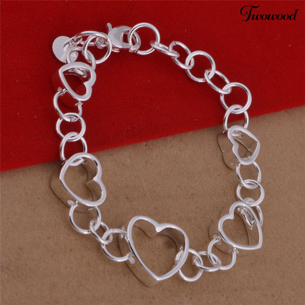 Detail Twowood 3Pcs/Set Wanita Set Perhiasan Semua Pertandingan Pengerjaan Halus Menarik Trendi Indah Dress Up Alloy Bentuk Cinta Kalung Gelang Anting Hadiah Anniversary