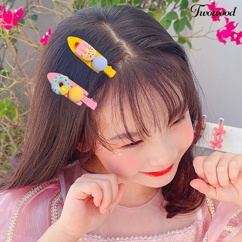 Aksesoris Fashion > Aksesoris Rambut > Jepitan & Pin Rambut > Twowood Anak Jepit Rambut Kartun Warna Vital Anti slip Halus Tepi Mulus Hiasan Rambut Cream Ringan Donat Anak Klip Samping Alat Styling Rambut