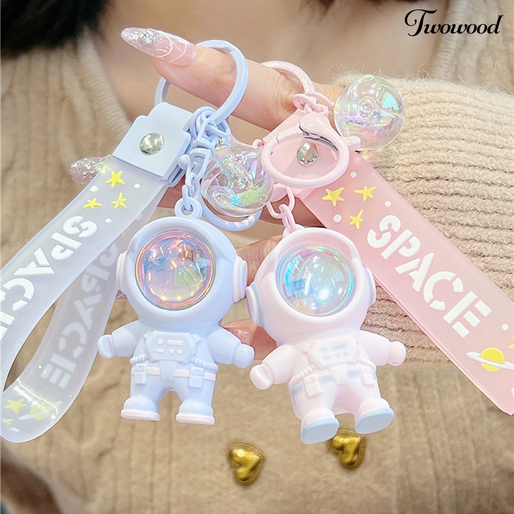 Twowood Astronot Gantungan Kunci Dengan Lampu Sunset LED Bercahaya Indah Kartun 3D Spaceman Ornamen PVC Gadis Pasangan Kunci Ransel Liontin Hadiah Ulang Tahun