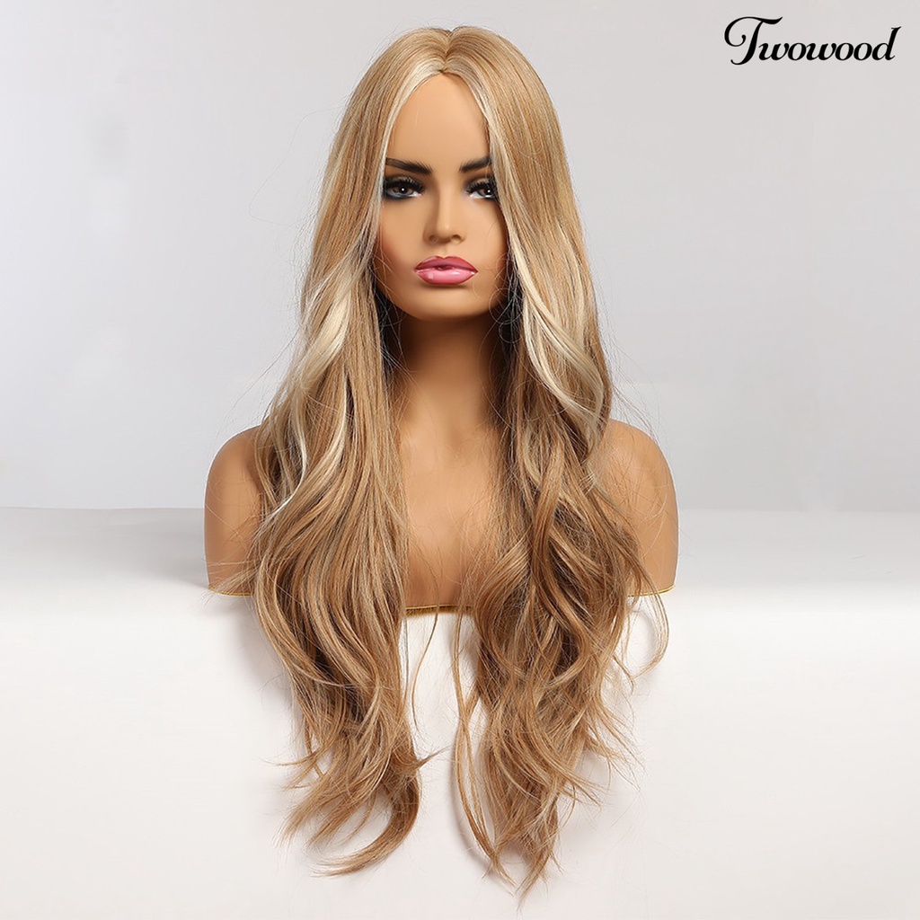 Detail Twowood Curly Rambut Wig Universal Berbulu Lembut Indah Fashion Lady Alat Kecantikan Ringan Coklat Highlight Rambut Palsu Pirang Untuk Kehidupan Sehari-Hari