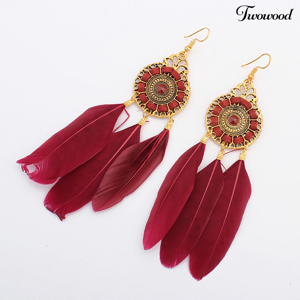 Twowood Earring Anting Eardrop Bulu Vintage Halus Elegan Untuk Ruang Ganti