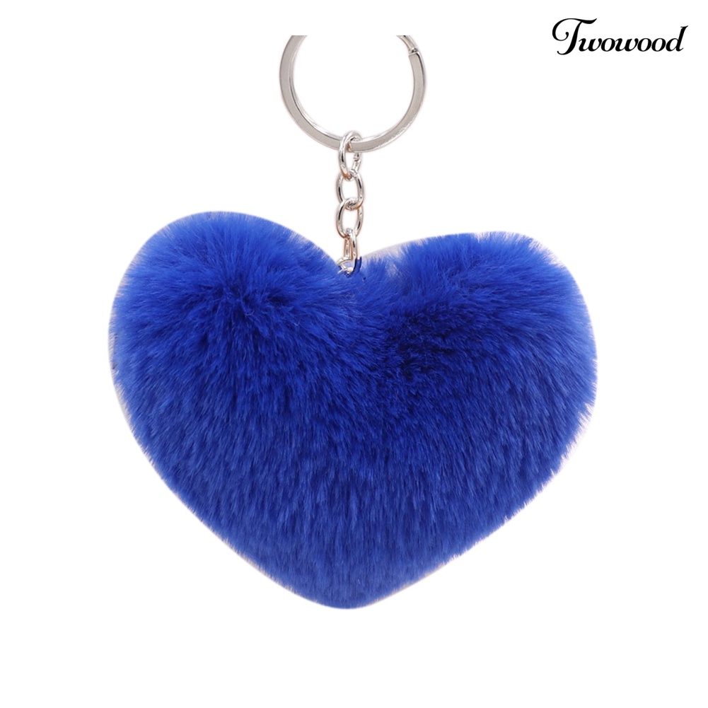 Detail Twowood Fluffy Love Heart Keychain Key Ring Liontin Handbag Tas Dompet Bulu Imitasi Dekorasi
