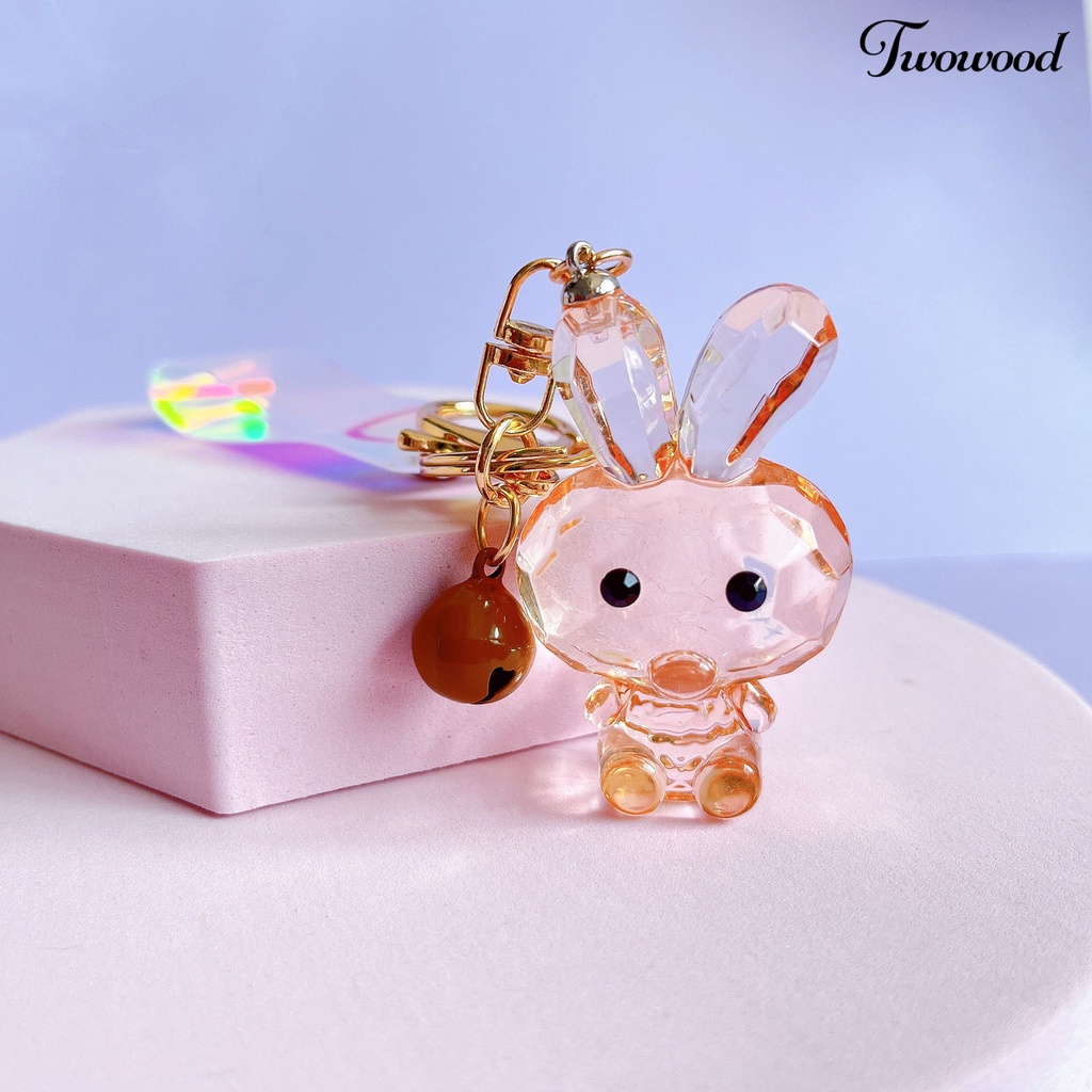 Detail Twowood Gantungan Kunci Tiga Dimensi Hewan Imitasi Kristal Poles Hias Tekstur Kartun Lucu Transparan Kelinci Gantungan Kunci Tas Dekorasi