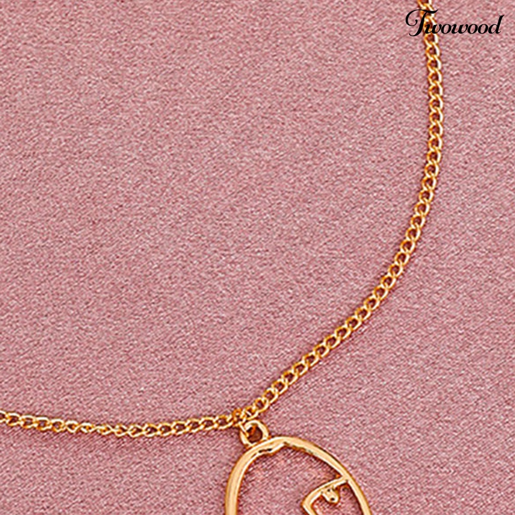 Detail Twowood Hollow Abstract Face Pendant Clavicle Necklace Women Long Chain Sweater Necklace New Year Gift