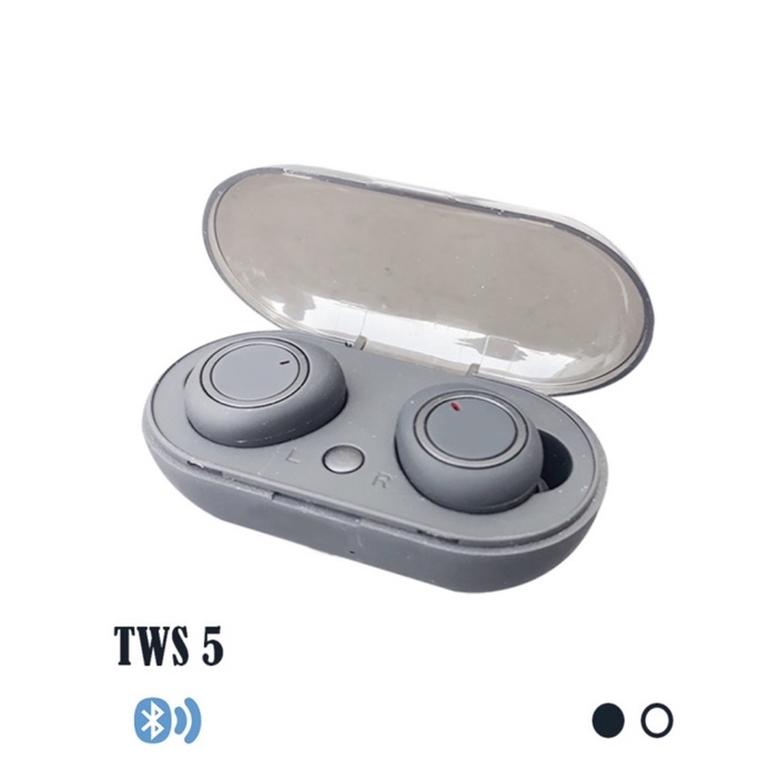 Earphone stereo bluetooth nirkabel TWS 5 merupakan ear phone tanpa kabel dengan design portable dan minimalis. Didukung teknologi HIFI dan pilihan mode channel mono dan stereo. Didukung bluetooth versi 5.0 frekuensi 2.4 Ghz dengan jangkauan hingga 10 meter. Didukung baterai litium 50mAh shell dan dapat di-charge ulang.