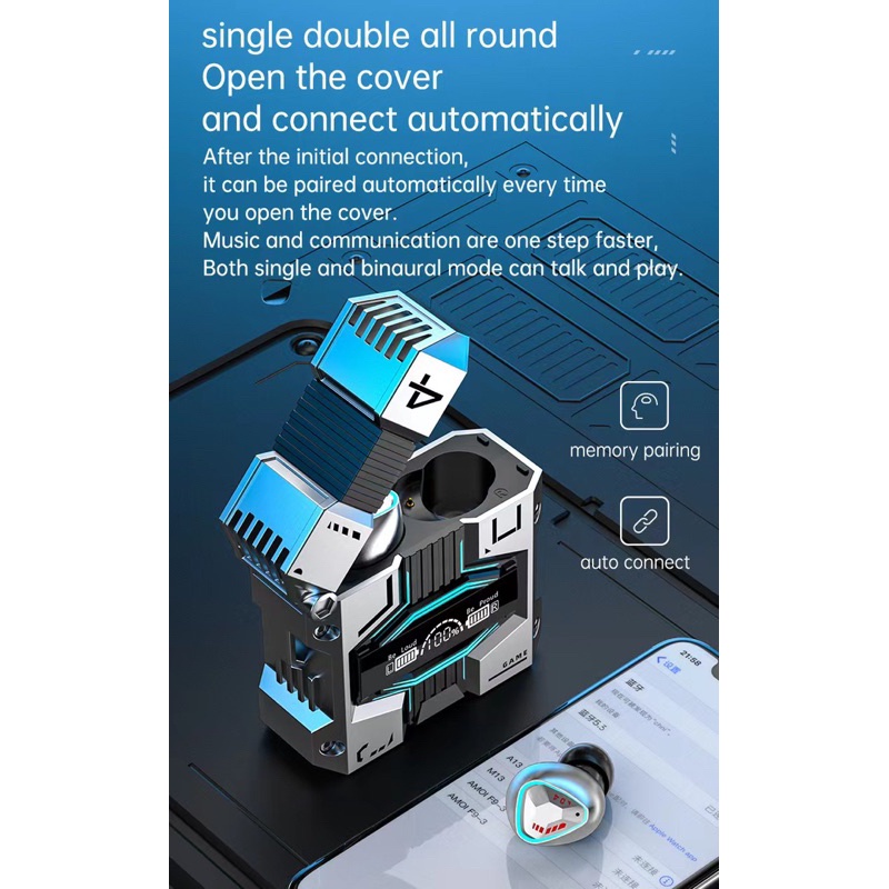 Detail TWS M45 ROBOTIC Bluetooth earphone 5.3 gaming headset bluetooth bass super stereo earphone TWS
