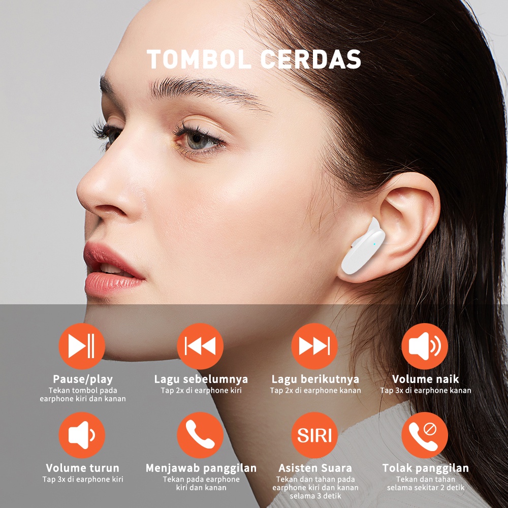 Menjawab panggilan: tekan pada earphone kiri dan kanan Asisten Suara: Tekan dan tahan pada earphone kiri dan kanan selama 3 detik Tolak panggilan: tekan dan tahan selama sekitar 2 detik