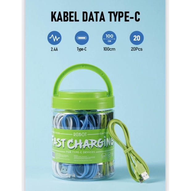 TYPE C ROBOT COLORFUL KABEL DATA TYPE C FAST CHARGING 2.4A STRONG MATERIAL STYLISH DESIGN CABLE TYPE C ORIGINAL ROBOT.