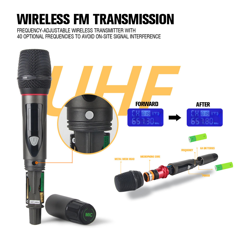 Detail U888 profesional profesional satu dua mikrofon FM bagian-U nirkabelgenggam nirkabel rumah KTV luarruangan konferensi kinerja panggungbisnis pernikahan pelatihan pidatolangsung