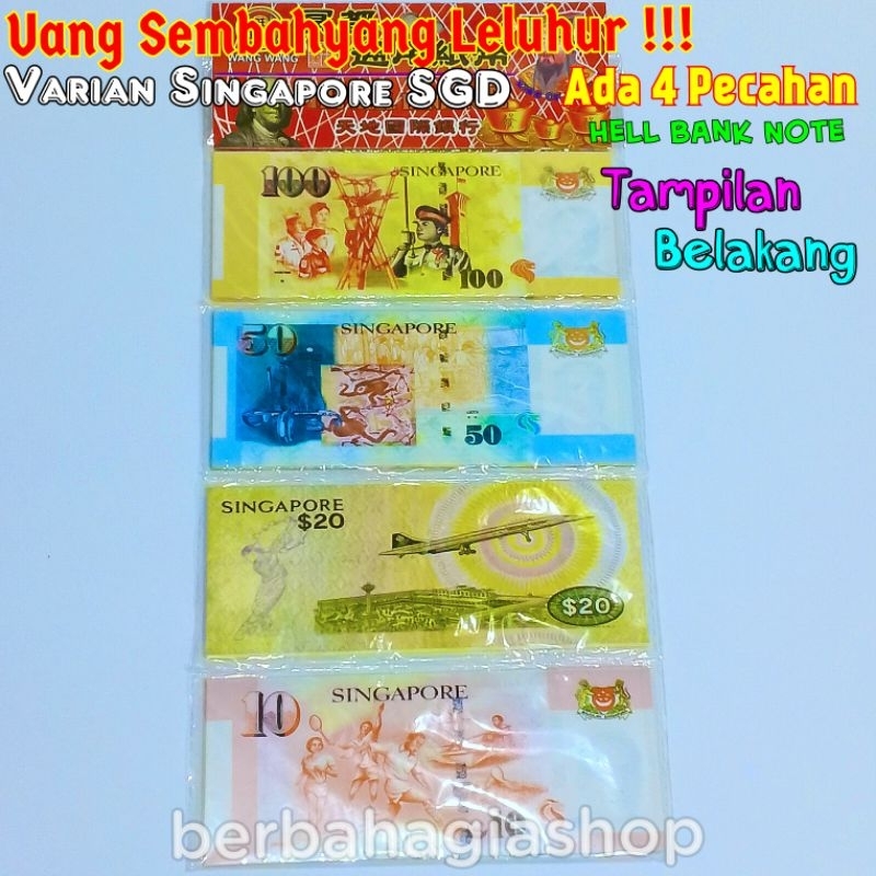 Uang Kertas Duit Cepi Untuk Sembahyang Leluhur Varian Dollar Singapore SGD 4 Pecahan Hell Bank Note Sembayang Puja Kubur Cheng Beng CengBeng Ceng Beng