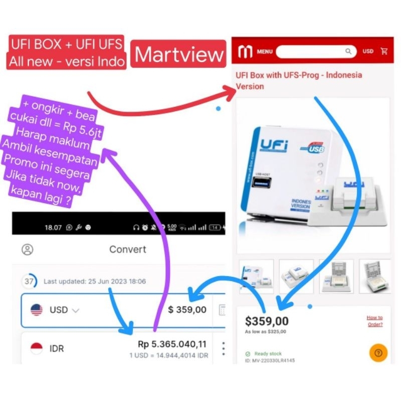 1 x UFS ToolBox 1 x UFS 2in1 Socket Adapter ( BGA254, BGA153) 1 x UFS ISP 1 x USB Data Cable Harga diatas lebih murah daripada harga easy jtag plus box only (belum termasuk soket² Bga nya) saat ini 23 Oktober 22