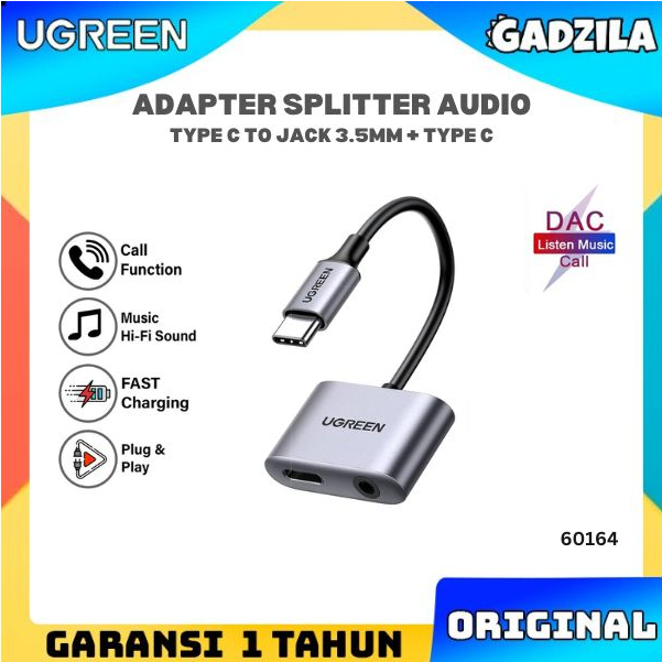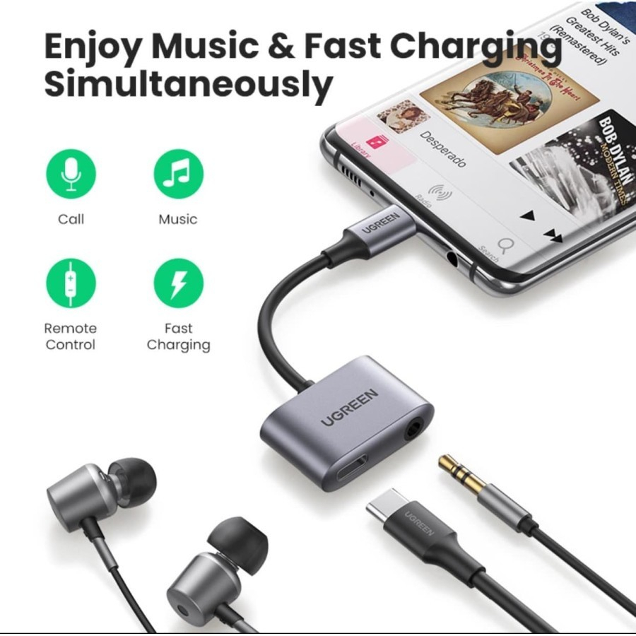 UGREEN Adapter Converter 2in1 Usb Type C To Audio Jack 3.5mm Handsfree Earphone Mic Call & Charger Charging Port Type-C Untuk Samsung S20 S21 S22 Note 10 Plus Ultra for Google Pixel 60164