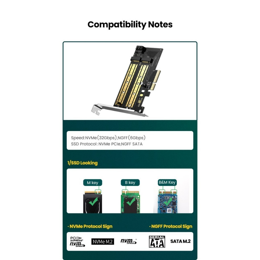 👉Catatan Ini dirancang untuk bekerja hanya dengan M kunci M.2 PCIe SSD. Tidak kompatibel dengan kunci B M.2 PCIe x 2 SSD atau kunci B M.2 SATA SSD.