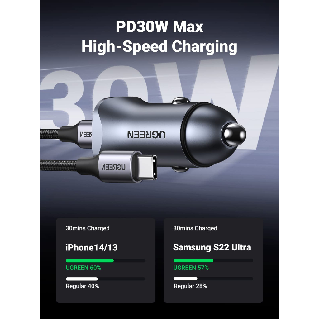 Detail UGREEN Car Charger Mobil USB A + PD Type C Fast Charging QC 4.0 3.0 Untuk iPhone Android Samsung