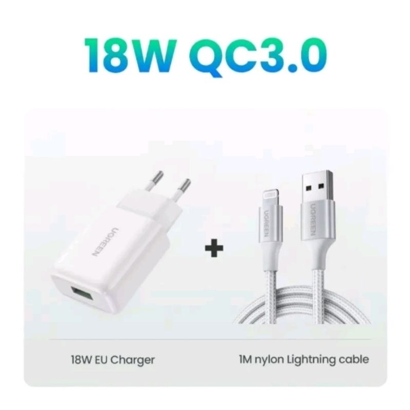 Detail Ugreen Charger iPhone 18Watt with Kabel Usb Lightning Mfi Certified for iPhone 14 12 13 11 8 7 X XR XS