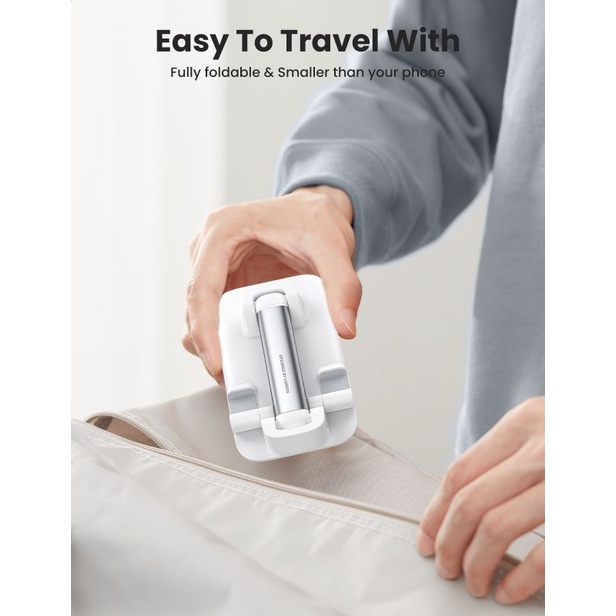 UGREEN Phone Stand Foldable (LP373-Foldable) - Stand dapat dilipat - Kompatibel dengan smartphone / tablet dengan ukuran maksimal 7.2 inch - Bagian poros leher dapat diatur dengan kemiringan 90 derajat - Stand dapat ditinggikan hingga 4.4 cm - Size 11.5 cm x 6.6 cm x 2.5 cm