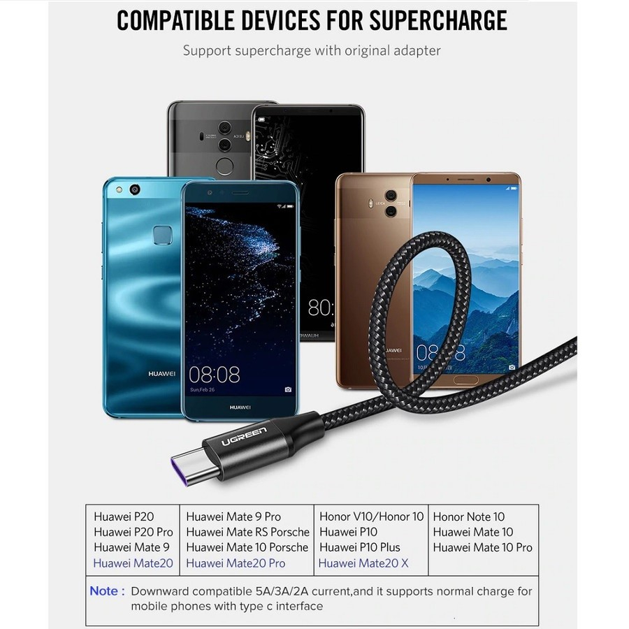UGREEN Kabel Data USB Type C 5A QC3.0 SuperCharge Panjang 25 cm / 1m / 2m 100% Original