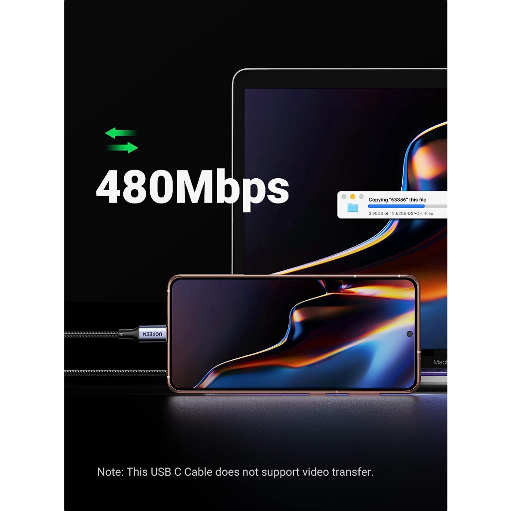 Detail UGREEN Kabel Charger USB Type C to Type C Fast Charging 5A 100w Nylon Braided