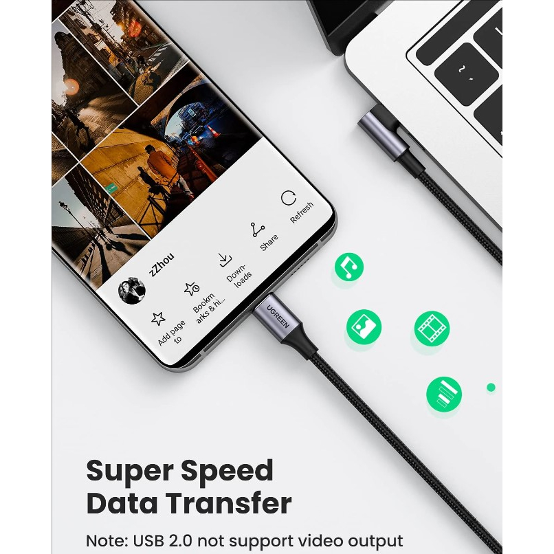 Deskripsi : - Merek :UGREEN Elbow 100w - Model :70643 1M, 70645 2M, 20583 3M - Material :Nylon Briaded - Current :5A, 100W - Panjang :1M, 2M & 3M - Transmission rate :480Mbps - Support :Fast Charging, Charging & Data Transmission, Gaming Style