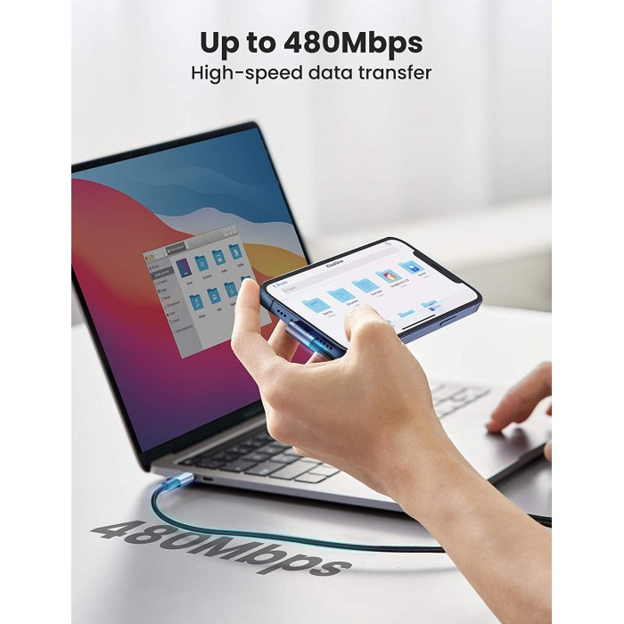 Deskripsi : - Merek : UGREEN - Model : 60763 ,60765 - Material : TPE + Nylon Braided - Current : 3A ,36W(Max.) - Panjang : 1M ,2M - Transmission rate : 480Mbps - Support : Fast Charging , Charging & Data Transmission