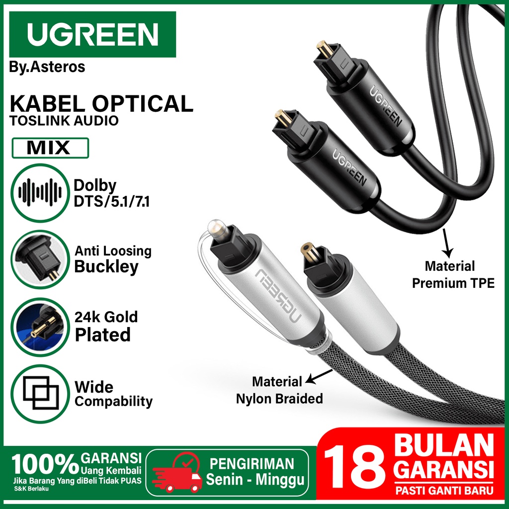 DESKRIPSI: - MODEL: Ugreen - Model: 10539 - Input, output: jack optik 2 kepala - Dukungan audio: Dolby digital (5.1, 6.1, 7.1), AC-3, DTS surround... - Kabel optik audio terbuat dari PVC berkualitas tinggi - Kabel audio optik juga dikenal sebagai Toslink, Optical - Kabel audio optik sepanjang 1m Ugreen 10539 digunakan untuk DVD, VCD, Mini Disc, TV... sambungkan ke Speaker atau Amplifier