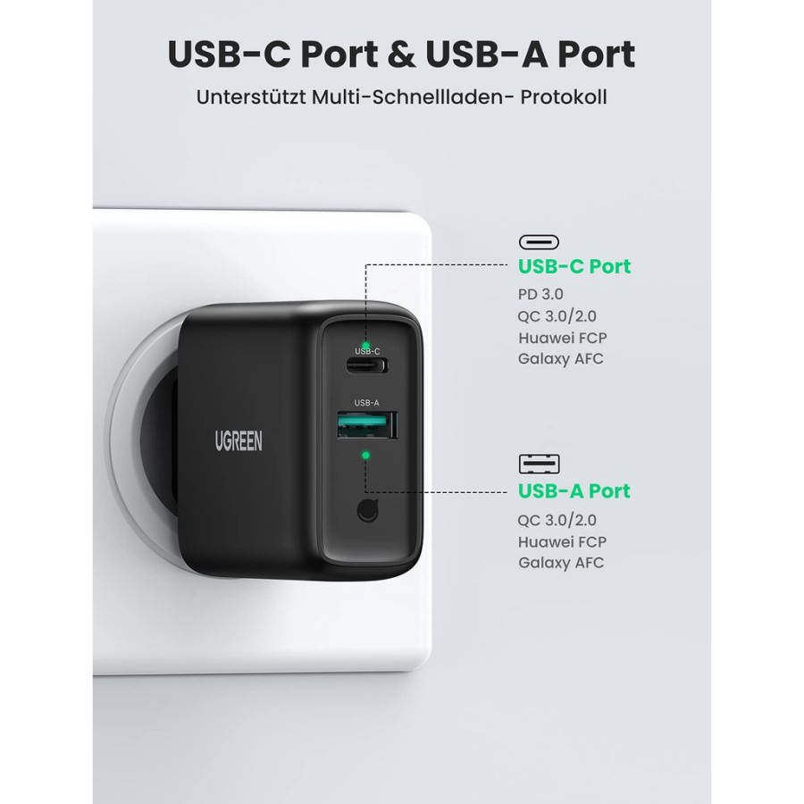 Detail UGREEN Kepala Charger Dual Port USB A USB Type C Fast Charging 36W