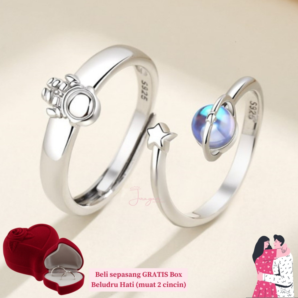 Detail [UKIR NAMA] Cincin Couple Astronaut World S34 Adjustable Ailoviu Original Perak Untuk Pasangan Hadiah Valentine Kado Gift