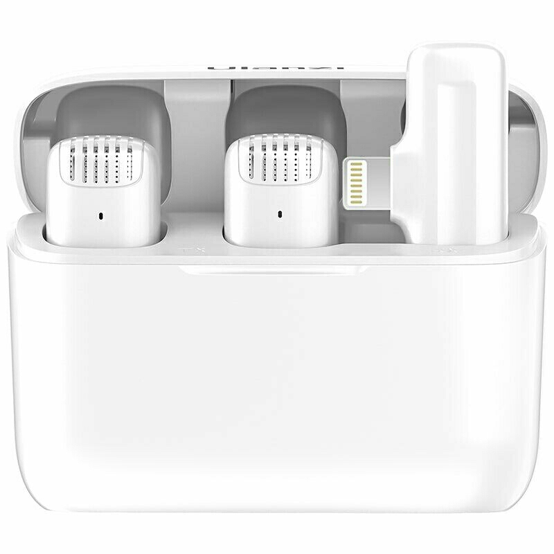 Additional microphone for wider use: Supports simultaneous recording with two microphones Make-up Live (Duo) * Interview (Duo) * Short Video (Duo) * Mukbang 2. Omnidirectional condenser microphone, 360° surround sound pickup, better sense of space Built-in intelligent noise reduction module can effectively filter out noise, high sound quality 3. Classic mini black style clips in any position in clothing 4. 65ft wireless reception 5. No APP required. Plug the receiver into the phone to connect automatically 6. With wireless earbuds type box design, easy to store, lightweight and portable 7. It may not use some cell phones like, please try to open OTG, like OPPO and VIVO. The general way to open OTG: Search open OTG in phone settings.